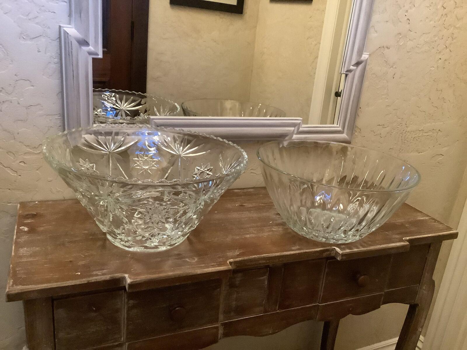 large clear glass serving bowls- 4 available at $5.00