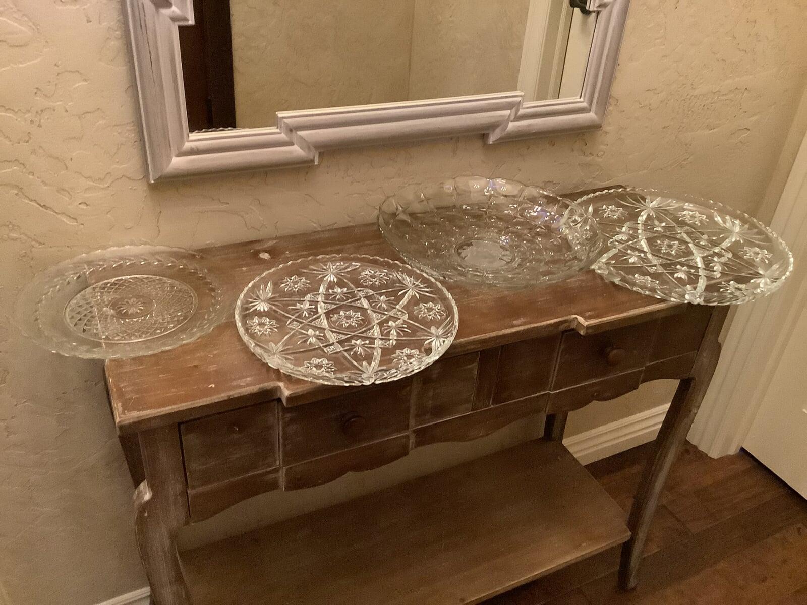 Glass Serving Trays/ Glass Serving Bowls/ Punch Bowls/ Cream and Sugar Dish/ Butter Dish: