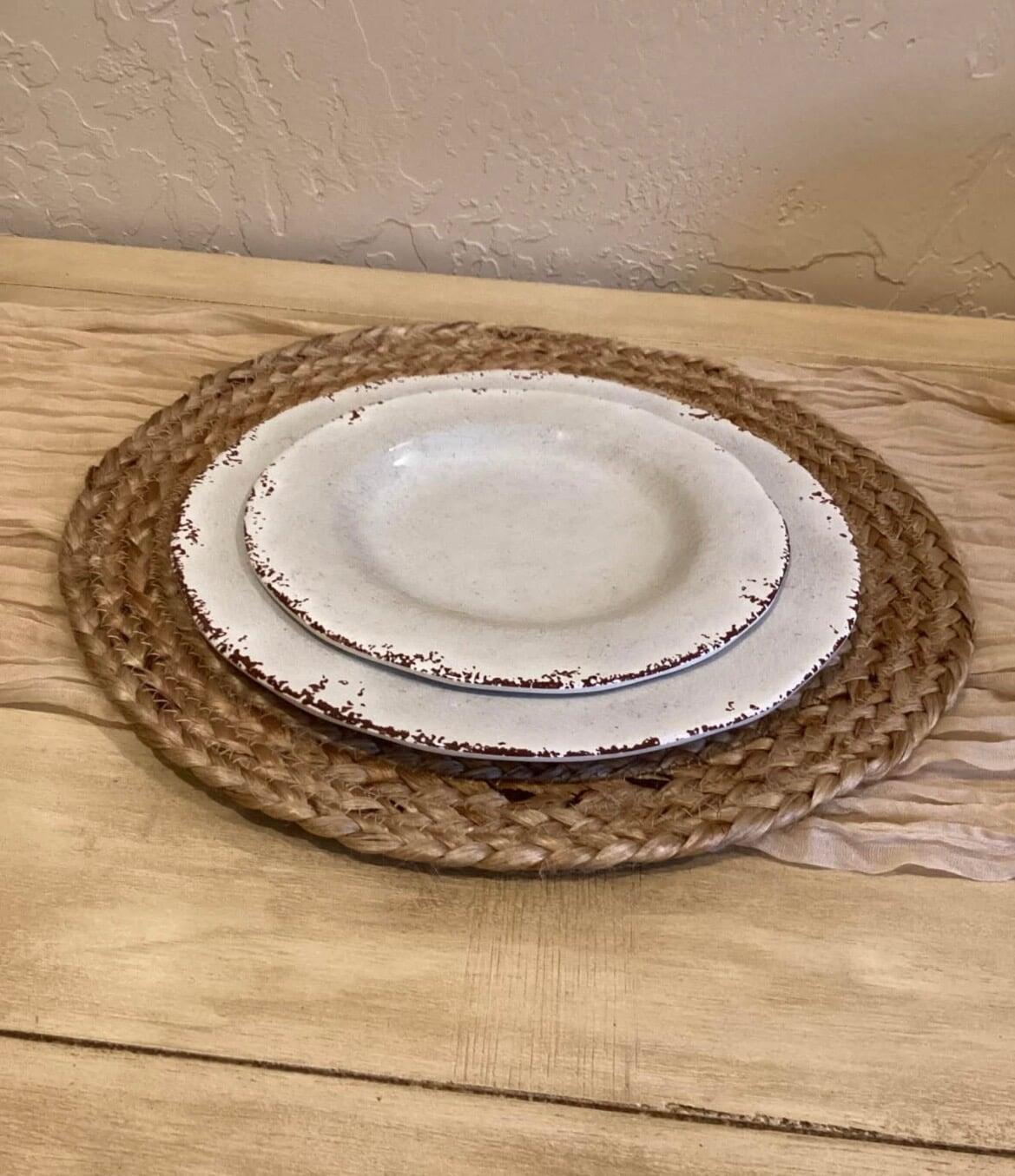 10 3/8", rustic, off white, melamine dinner plates- 55 available at $ .70 each
